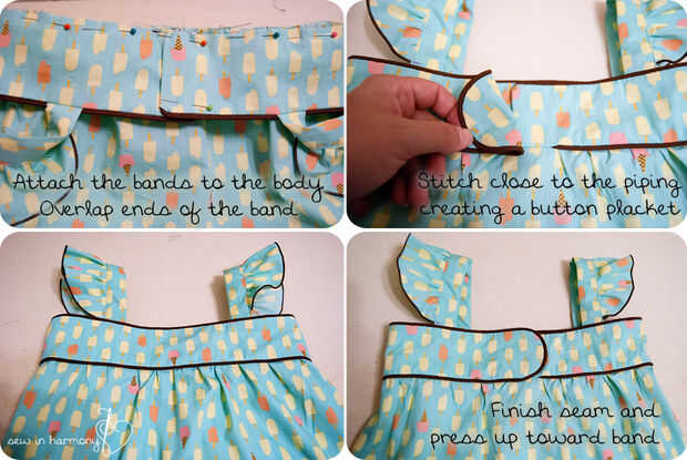 Coser el cuerpo a la banda, asegurándose de que stich muy cerca de la tubería. Nota: fue un poco exigentes para mí cuando llegué a los extremos traslapados. Simplemente va lento y comprobar que se cose lo suficientemente cerca para la tubería de.