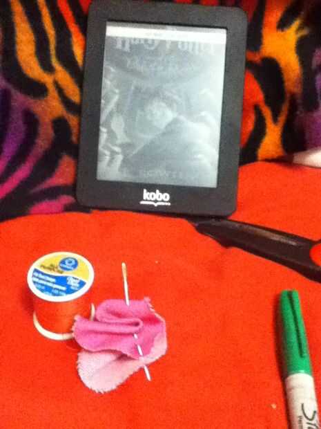 se necesita:2 piezas de x A4 tamaño de la tela2 piezas de x A4 tamaño de guata2 metros de bies2 piezas de plástico de la lona, el mismo tamaño que su e-reader30cm de elástico1 botónPaso uno:Una de las piezas de guata de cortar por la mitad. Se trata