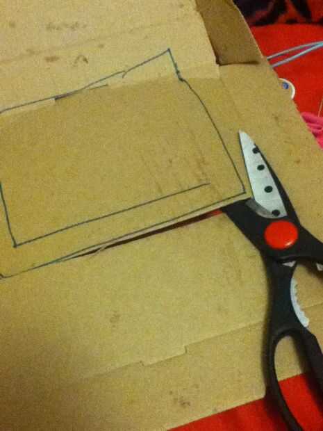 Solo que cortar la mitad. Luego, plegar (como en la foto) y cortar a partir de ahí. Debe tener un pedazo de cartón buscando libro.