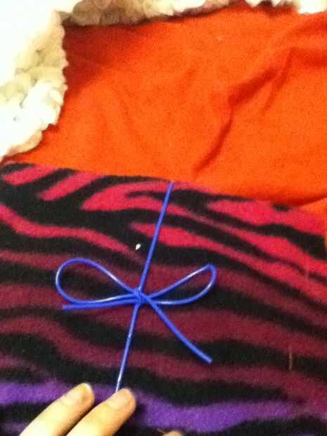 Utilizar el hilado o trenzado del cable para fijar. En la parte posterior, se dará cuenta de la parte posterior de las bandas elásticas están allí colgados. Hilo hilado/trenzado cable por ahí. Ate un arco agradable en el frente!