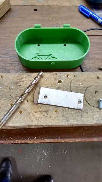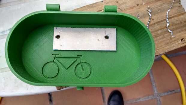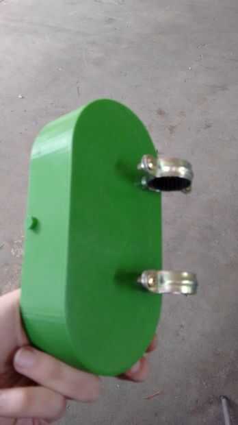 El principal problema que tenemos al frente en una bicicleta es la vibración. Si diseñamos amarres plásticos, podríamos tener problemas con las vibraciones rompen el plástico en las zonas más débiles. Para ello decido utilizar abrazaderas comerciales (normalmente usadas para tubos) que tienen un agujero para un tornillo en una de sus partes. Esto nos hace la Asamblea más fácil.