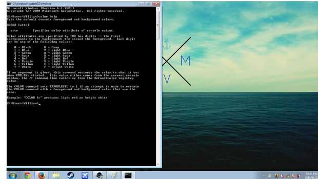 Si no saben cómo ejecutar cmd. Pulsa el botón de windows y r a continuación, escriba cmd y presione Entrar. Si desea cambiar el color sólo tienes que escribir ayuda de color y le dará una lista de todos los colores. El primer número es el backround la segunda la escritura. Si un comando deja de funcionamiento pulse ctrl + c deja el programa.