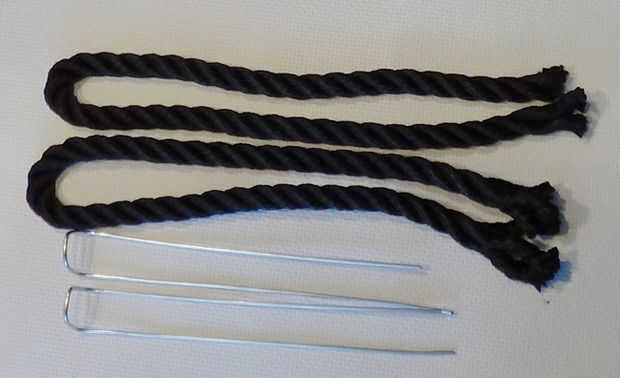 Ahora, cortar la cuerda en dos partes. Doblado en el centro de que las piezas deben ser un poco más largo que las barras de metal, igual que la imagen sugiere.