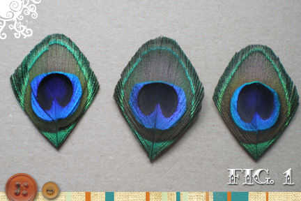 Tomar tres de su pavo real plumas y recortar la pestaña tenue como extremos de la parte superior redondeada y corta el tallo justo por debajo del "ojo" (ver fig. 1).