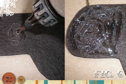 * Nota: Es muy importante que el pegamento no tiene cualquier granos gruesos, para ayudar a evitar esta seguro que la pistola encoladora es muy caliente y tomar la punta y coloque derecho contra el fieltro y moverse por la zona.