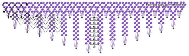 Hacer lo básico del collar. Luego añadir a los granos de la semilla base (ondas). El patrón muestra el número de granos de la semilla en cada fila.