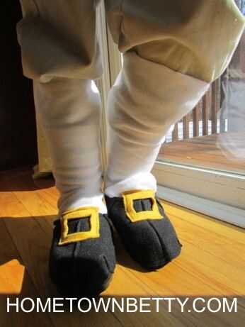 camisa frontal de encaje volantes (parte 1) para el traje de histórico de la escuela de Piano Man. Para la siguiente pieza, quería hacer una bota cubierta sobre sus botas de lluvia. Investigué en línea para encontrar un tutorial para hacer un arranque rápido y fácil para el traje de un niño. Sin embargo, fue difícil encontrar a uno hasta que encontré un estilo similar de arranque de tutorial de Star Wars Han Solo botas de mactothefuture. Su tutorial proporcionado excelentes fotos para hacer una plantilla. Esto a su vez me ayudó a hacer un niño de tamaño arranque europeo del siglo XVIII. Sin embargo, mezclé mi propio conocimiento borroso de la moda europea del siglo XVIII. Como resulta que necesitaba hacer un zapato de hebilla negro con polainas blancas.