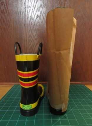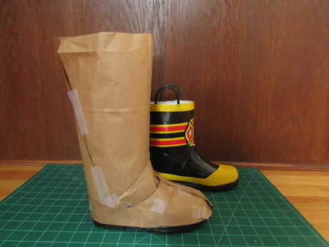 Desde un ángulo, se pueden ver 6 piezas de la plantilla: 4 para la bota (negro paño grueso y suave) y 2 para el pedazo de polaina (blanco polar).