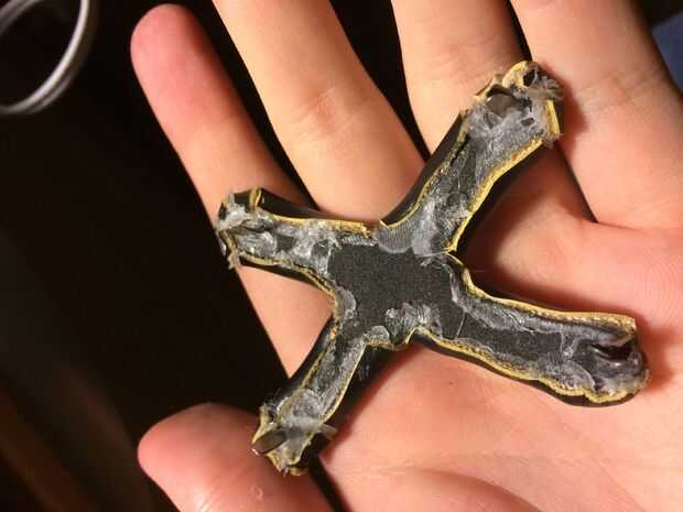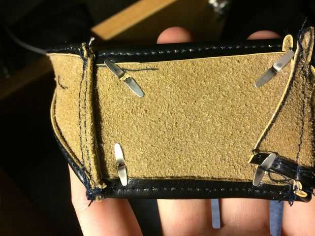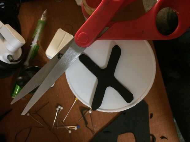 Vamos a volver el el parche en el ojo y corte hacia fuera una "x" para fuera de espuma del arte. Los cantos y la cubierta en la misma tela que la mascarilla. Pegamento caliente por los bordes; corte dardos y recorte los bordes a medida que avanza. Una vez es bueno meter agujeros y pega vigas a través del frente hasta el parche colocar juntos. Hacer esto a todos los rincones. También puede pegar uno de los postes de madera en los bordes de la nariz y colocar hilo para que el gancho sobre su nariz. Luego coser los broches en los extremos de su parche en el ojo y en donde el parche se fija a la máscara para conectarlos juntos. Por último los tornillos (que me olvidé de sacar fotos) en los lados del cuello puede ser elaborado fuera de espuma del arte, gessoed luego pintado plata, sellado y pegado a los lados del cuello justo debajo de la mandíbula.