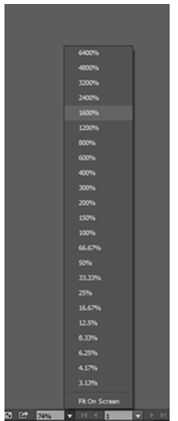 Utilice la herramienta de Zoom situada en la parte inferior de la pantalla. Zoom a un 1600% en la primera esquina del triángulo.
