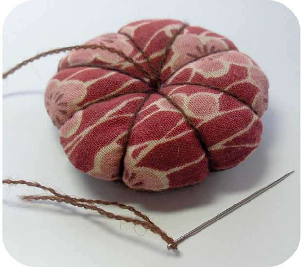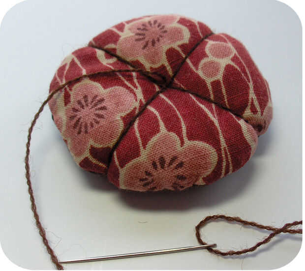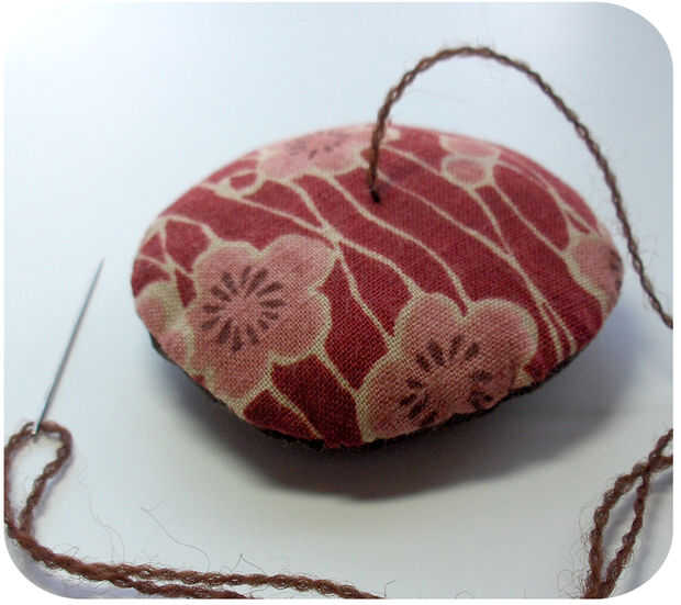 Envuelva el hilo alrededor exterior borde y empuje la aguja a través del centro de fondo nuevo que sale en la parte superior.