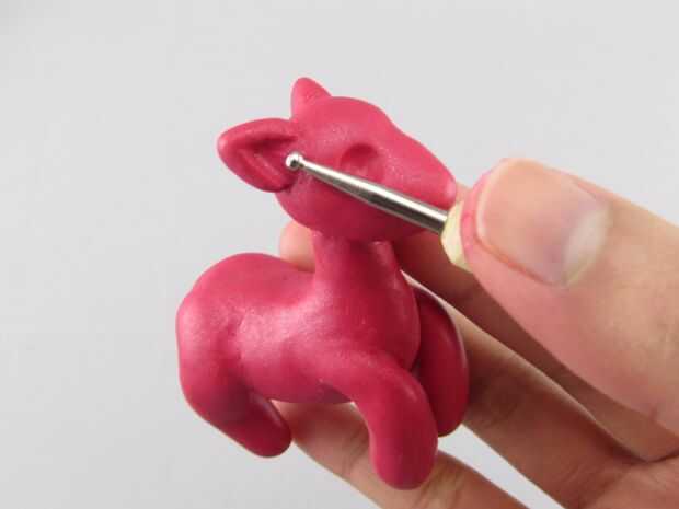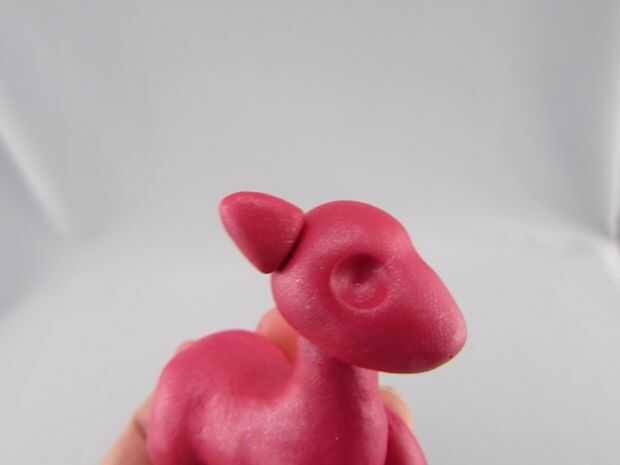 Entonces para los oídos, hacen una forma triangular. Usar una aguja de bola para hacer un guión triangular y mezclarlo al lado de la cabeza.