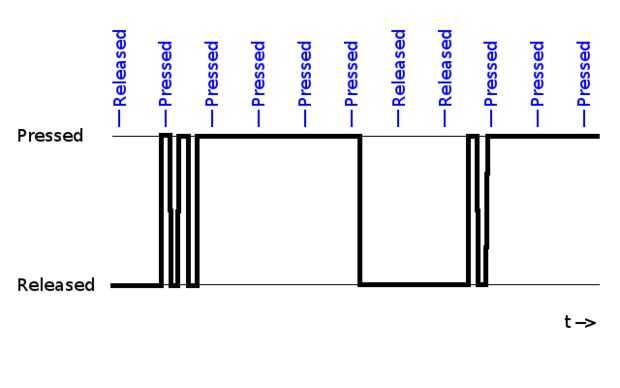 Estas oscilaciones se denominan interferencias o rebotes. Se puede eliminar agregando un condensador (introducción de algo de retraso), o por software.