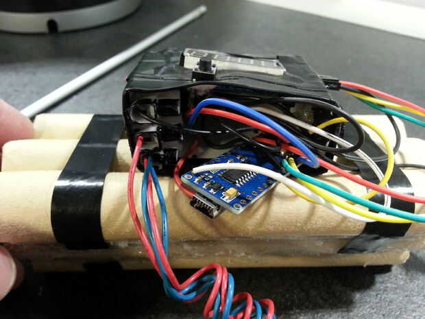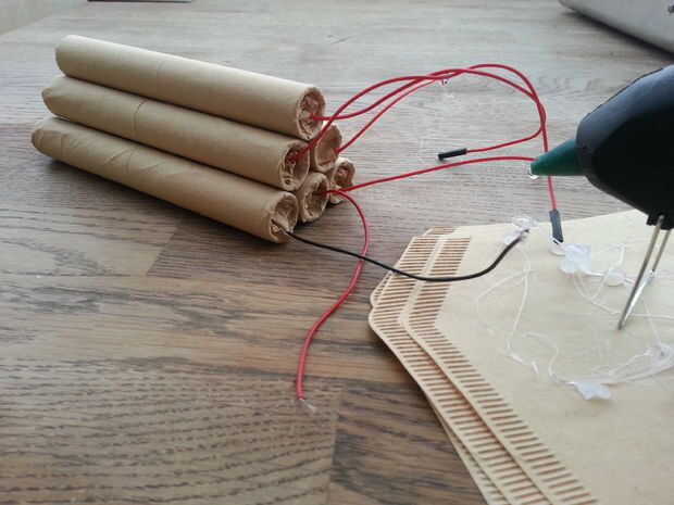 Unir los palillos. Ponga cinta en ambos extremos. Cable todo