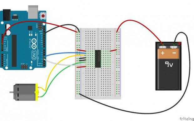 2.) es una línea de control para el motor 1. Utilizas esto con pin 7 para controlar la dirección que el motor gira 1. Si el pin 2 se encuentra alta y el pin 6 se encuentra baja. El motor hará girar una forma. Si le da la vuelta les pin 6 es alto y pin 2 es baja el motor cambiará de dirección. En todos los demás Estados no gira el motor.