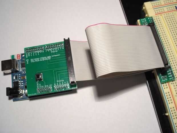 Ver la tercera foto, esta es una manera aseada he creado para mantener a tu arduino de todos los alambres de loco. Además, mientras se trabaja en más de un proyecto, puede fácilmente y rápidamente cambiar entre tus proyectos. Este tutorial te enseña a usar un escudo de Arduino, el phi-connect, para organizar sus proyectos. La imagen es un escudo de phi-connect conectar un arduino a un tablero de pan. Pasa todos los pines de Arduino a la placa de pan y alimenta los autobuses de la Junta Directiva de pan con 5V y GND.