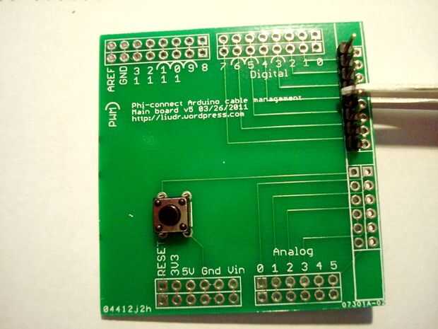 Usted puede soldar primero sobre el botón. Es fácil. El botón se encaja en el tablero. A continuación, suelde una fila de pines macho con la ayuda de la pinza. La fila debe enfrentarse y ser el interior de la fila, no el exterior. La razón es que el interior fila no fácilmente sujetarse firmemente si hay una fila exterior. Así que comienzo con el interior filas y dos pasadores enfrentadas para asegurar los pernos de soldadura. Luego retire el clip y el resto de los pines de soldadura. Luego de la soldadura de los pines 8-fila a la fila exterior. Luego soldar los pines 6-fila en el lado interno, seguido por los pernos 6-fila en el lado externo.