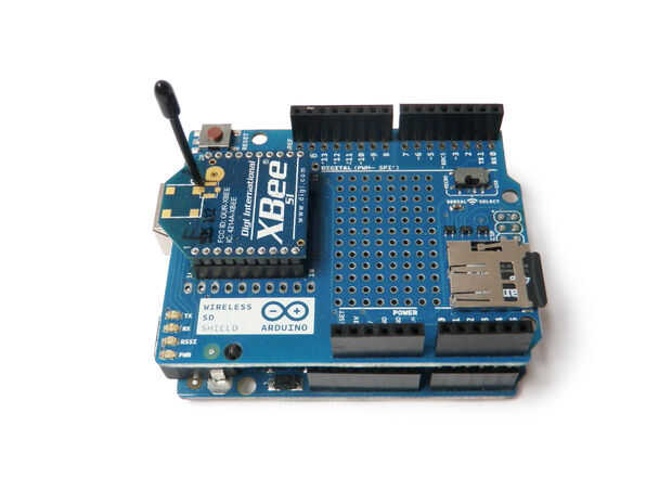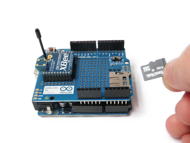 Conecte la tarjeta SD a la toma en el escudo.