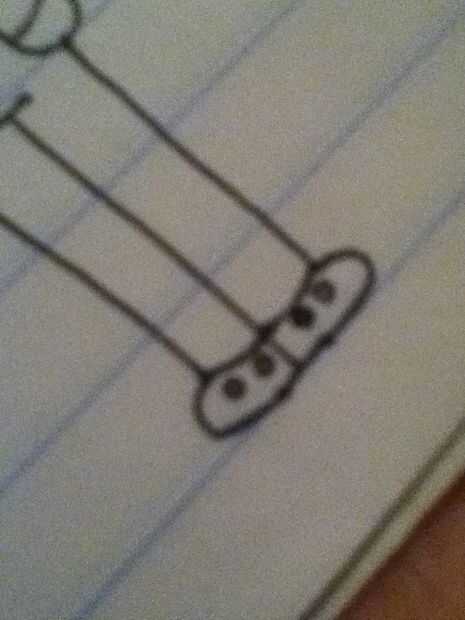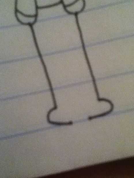 Para los zapatos, dibujar una línea curva donde sus zapatos separan de sus pantalones vaqueros. A continuación dibuja dos círculos pequeños y todo lo demás en rellenar.
