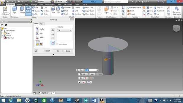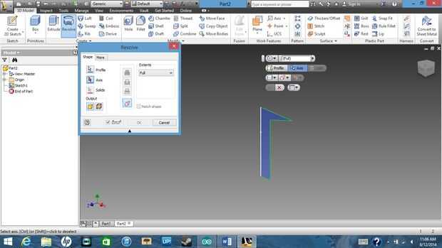 Para mostrar las rotaciones que abrió una nueva pieza, a ser mostrando cómo hacer un tornillo usando esto para que no cierren esta página o en la otra página si están siguiendo a lo largo de. ¿Primero haces una forma correcta? Sí. ¿OK ve la forma que hice? Si se va a girar en un círculo alrededor del lado izquierdo que tipo de se asemejan a un tornillo. Así que selecciona en la ventana de modelo 3d en rotación y donde dice eje vas a haga clic en el lado plano de la forma. Automáticamente debe girar alrededor de todo el camino.