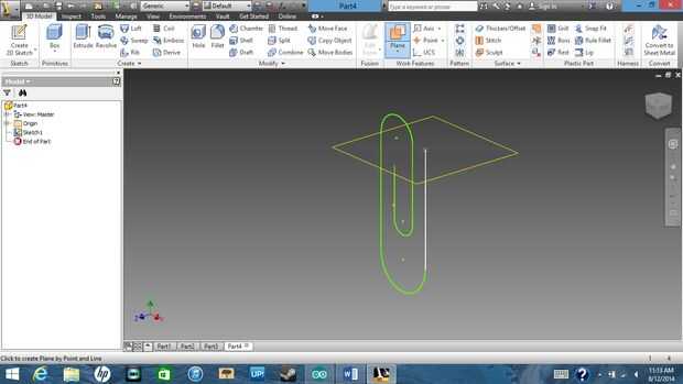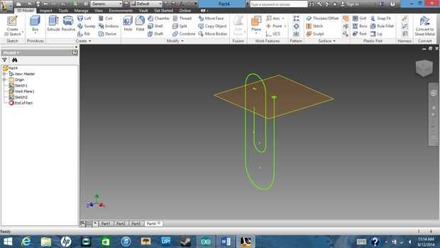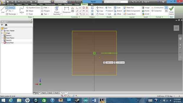 Cuando se tiene que crear un croquis en el plano. Aunque usted no puede ver el punto, el centro del plano es donde vamos a hacer el círculo. después, en la sección de modelo se ha cambiado la visibilidad del avión al igual que el dibujo. Ahora en la barra y haga clic en el círculo y su camino elegido (clip)