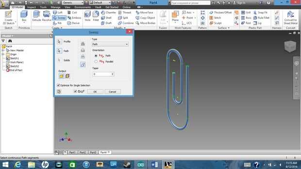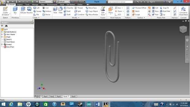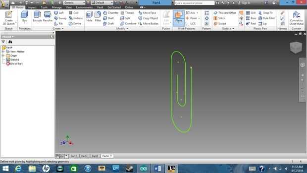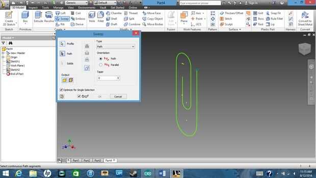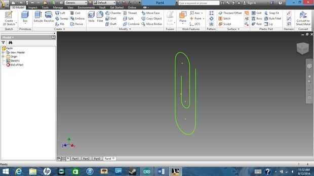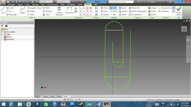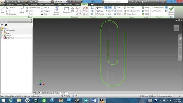 Esto no es una escoba, esto le mostrará cómo hacer formas irregulares que tienen la misma forma de "barrida" a través de ellos. Durante el bosquejo 2d visto anteriormente hice el contorno áspero de un clip y que el agregado de algunos arcos. para eliminar los bordes rectos ha hecho clic en TRIM y que selecciona las líneas que quería recortar.