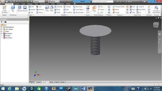 Vamos hacia el tornillo que estábamos haciendo. Ahora vamos a añadir un hilo de rosca. para hacer este hilo select y seleccionar la parte cilíndrica del tornillo. el valor predeterminado hilos todo, pero puede cambiar si quieres.