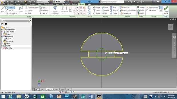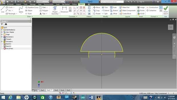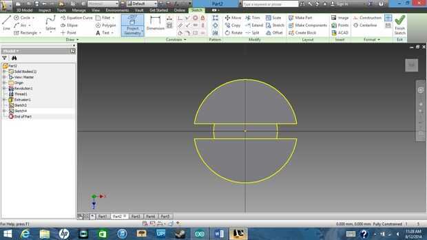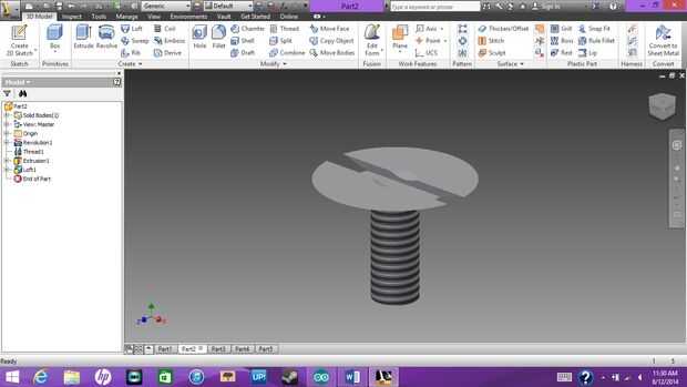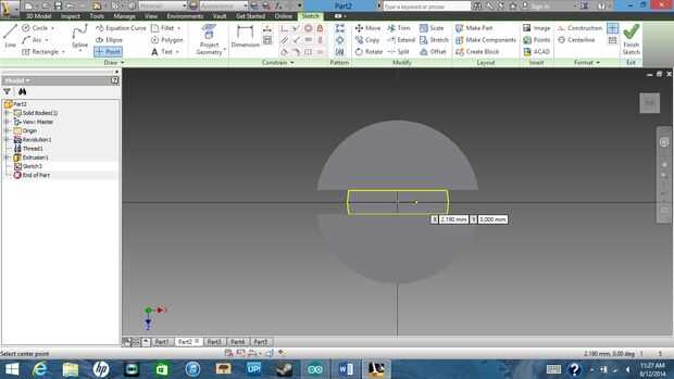 A continuación he creado un boceto en la parte superior del tornillo, pero puesto que solamente un lado del tornillo fue seleccionado solía GEOMETERY de proyecto proyecto el otro lado. Ahora que ambos están señaladas en amarillo. Ahora vamos crear un círculo usando el mismo punto de centro como el otro punto que acabamos de crear.