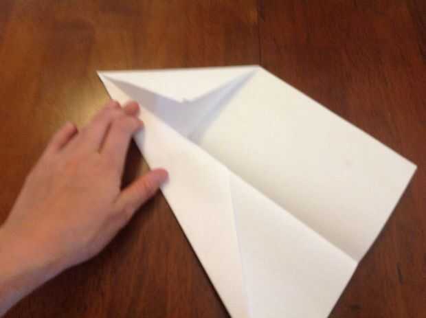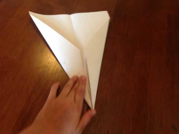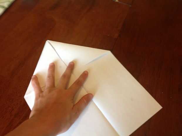 Después de hacer eso, ábrala y doblar en las esquinas otra vez. Se puede ver que los bordes en el papel de la parte inferior pueden ser desigual. Esto es común y no afecta demasiado el vuelo del avión.