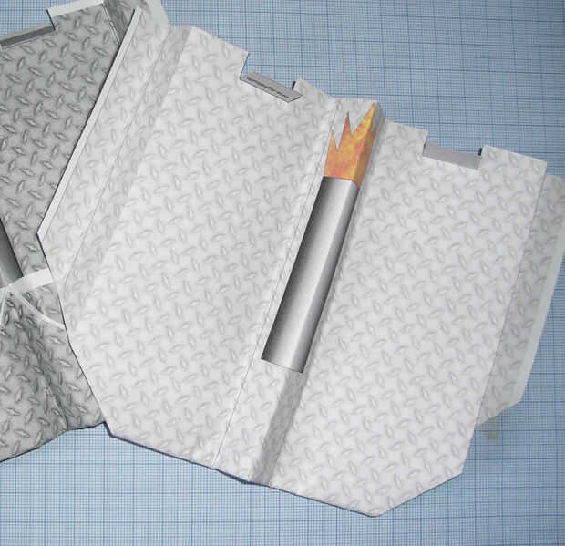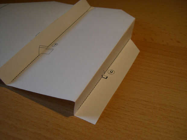 En el color versión construir en "aletas de aterrizaje". Con una tijera corte las aletas de dos veces y doblarlas hacia arriba o hacia abajo para conseguir mejores características de vuelo.