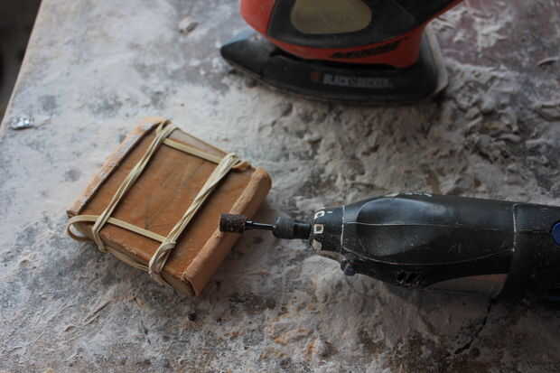 La lijadora o alto Dremmel poco de la arena y las áreas que serán pegadas en bruto. ¡ Simple!