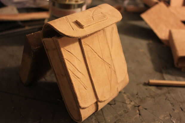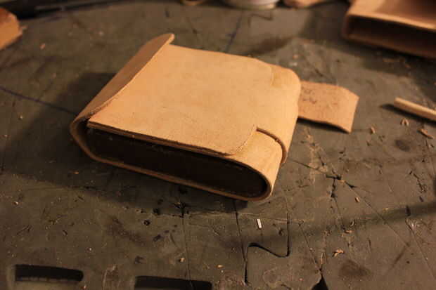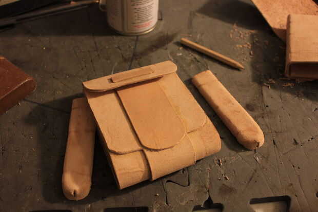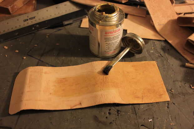 Para crear un vínculo sólido entre dos piezas de cuero necesita cemento de contacto del cuero pero primero quiero preparar duro para pegar áreas. Yo uso una ficha de pegamento caliente en el interior para sujetar los dos extremos de los lados juntos para las piezas laterales como se muestra en el cuadro 1.