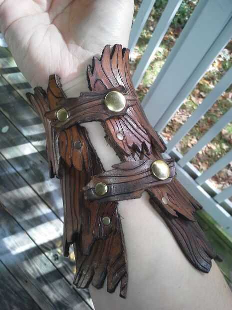 Una vez que tienes que hacer ambas correas de, remache las correas en lugar de un lado de la sujeción. Envuelva el bracer vuelta alrededor de su brazo y marca donde el lado opuesto de la presión se vaya y los encaje en su lugar.