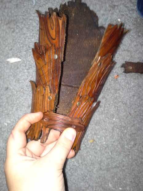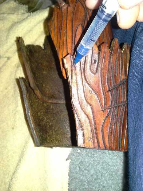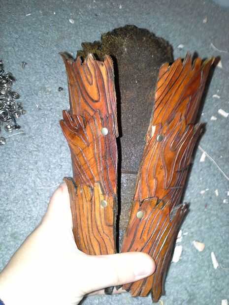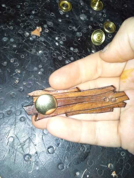 Una vez los podrá poner el brazal en el brazo. Ahora necesita marcar donde van los agujeros para los remaches en las correas. Una vez haya marcado en un lugar los encaja bien, taladre los orificios. Beofre remaches en las correas, necesita broches de las correas. : p aquí es un vídeo sobre cómo hacerlo. Si trato de explicarlo, se confundirá a todos. : p