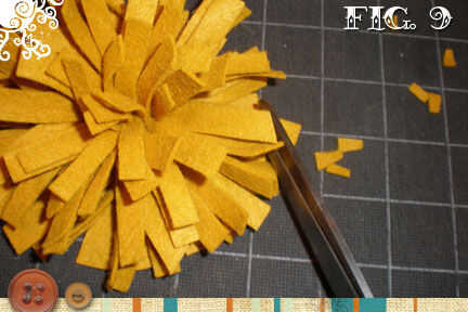 Una versión más pequeña: Para hacer la versión más pequeña de la flor de pin, uso 3.25" de la base y en el paso #2 Corte el pedazo largo de tela por lo que es 30" largo por 1.5" de ancho en lugar de dos.