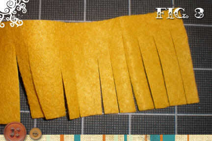 Cortar la longitud del fieltro, creando un efecto de flequillo. Hacer los cortes alrededor de un cuarto de pulgada del extremo del. Las tijeras individuales deben ser entre un cuarto y tres - eighths de una pulgada de ancho, pero no necesitan ser perfectos. La aleatoriedad del tamaño se agrega al carácter de la flor.