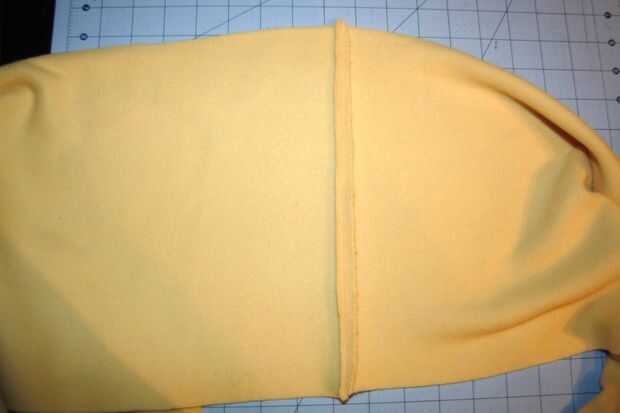 Esta es la apariencia de la costura como ahora. Coloque el pañuelo delante de usted con las costuras crudas frente a usted: