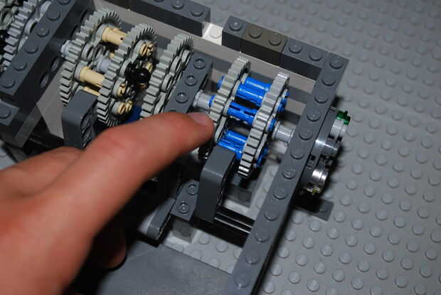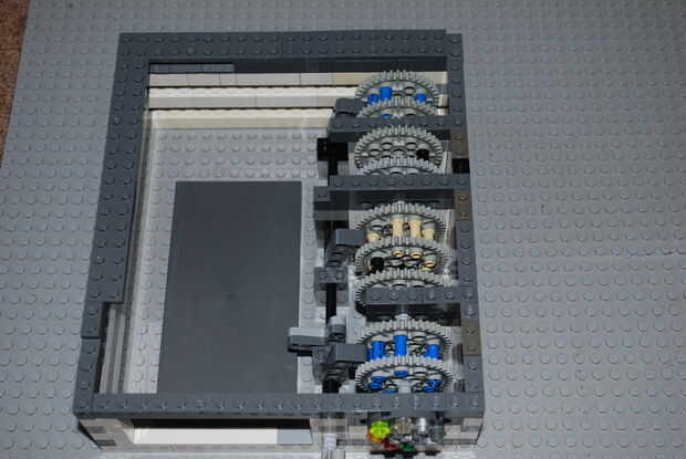 La última parte es averiguar su combo. A veces no siempre funciona, así que tienes que mover la clavija en un lugar diferente, pero finalmente se figura hacia fuera. Para encontrar el color de la primera, gire la rueda hacia la derecha hasta que la muesca de los últimos segmentos está abierto a la clavija pequeña "L". El color en la parte superior es el color de la primera. Luego girar la rueda hacia la derecha hasta que la muesca de los segmentos segundo está abierto (el color en la parte superior es el color de la segunda). Luego gírelo hacia la derecha otra vez, así que todas las muescas están abiertos a los pasadores y gire el eje con la llave y - Voila! -se ha desbloqueado! He añadido algunos bloques en la parte inferior, así que si usted gire la llave muy lejos, detiene.