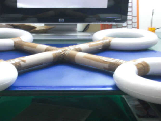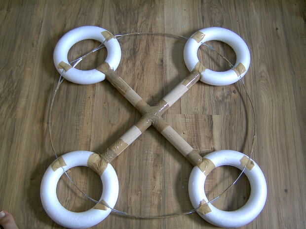 Ahora doble el cable dos veces alrededor el Chakram. Asegúrese de que se ve bien, cortaron el cable. El cable de cinta también y fijarlo en la construcción. (Y sí... He utilizado un montón de cinta). Después de que se doble el cable, tomar algún diario y envuélvalo alrededor del alambre, hasta que el anillo tiene apretado desea. Cubra el anillo alto con cinta.