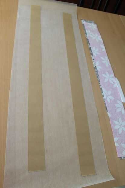 Tire el kraft de la cinta y pegarlo sobre el papel encerado. Tienen la cinta de kraft sea ligeramente más largo que su tela también. Si su cinta de kraft está en un soporte (incluso el fácil tirar y rasgar el soporte), querrá sacarlo porque puede tener un pliegue en la cinta, que dejará un pliegue en la tela.