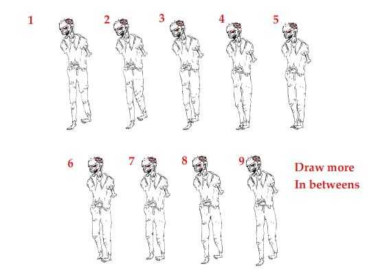 Ahora el ciclo de a pie sólo como ciclo de a pie normal pero con pequeñas subidas y bajadas es. No dejo la secuencia completa del ciclo paseo por favor dibujar algunos entre bastidores para hacer la animación más suave.