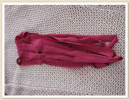 Corte una tira larga y delgada. Tenía un metro de la camiseta pero para hacer la tira más larga que corte todo el trozo de tela sin parar y la pieza de arriba tiene unos 3,70 metros. Cuanto más tiempo la tira, cuanto más gruesa la flor. Recuerde que debe ser de 1 o 2 cm de ancho.