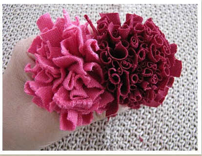 Un descanso en los pasos para la comparación. Aquí puedes ver lo que obtendrá si utiliza un ligeramente mayor y la pieza más corta de la tela (color de rosa uno siendo un algodón más robusto).