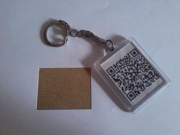 Descargar la imagen del código (el Png es mejor que jpeg), imprimir para que quepa el llavero)