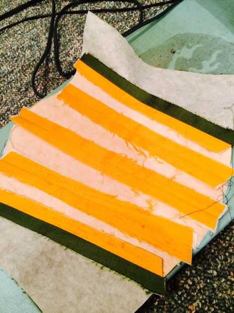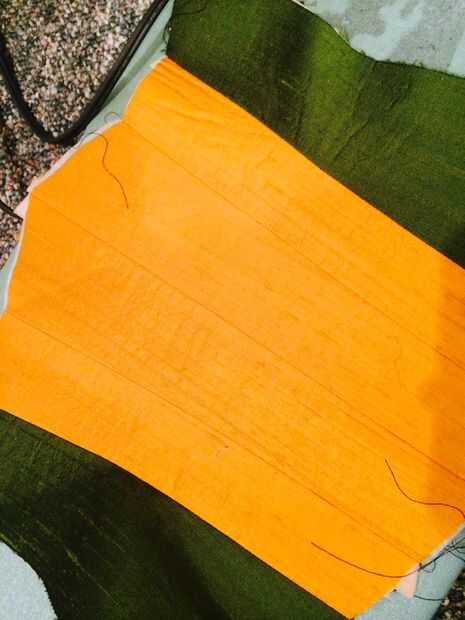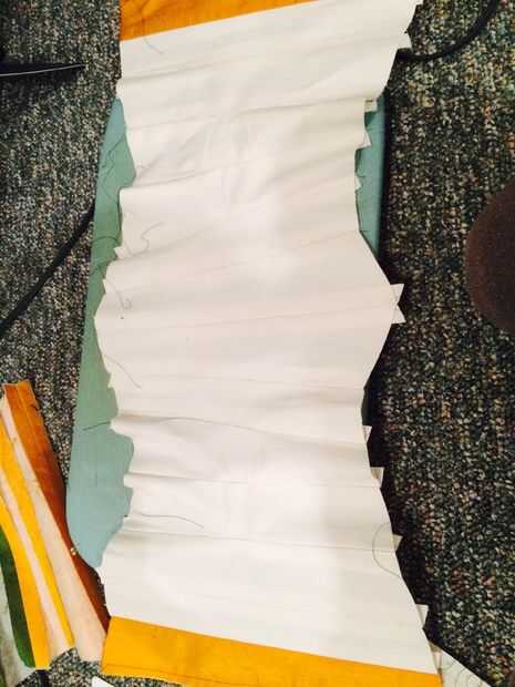 Coser los paneles juntos para ambas capas, prestando atención a que los bordes son la parte superior del corsé, y donde su costura subsidios superposición. Si usted tiene muescas, tenga cuidado de hacer coincidir como perfectamente posible. Algunas personas les gusta dibujar las líneas de costuras en los paneles y empareja para arriba cuando la fijación y comience a coser, pero coinciden justo donde los márgenes son. Parece que funciona bien. Se puede ver en la capa de coutil hay un oro en cada extremo. Es de la tela exterior extra corta. Rodillo-cubrió a la seda y el coutil junto con el coutil en la parte inferior, había cosido el panel y había recortado el coutil adicional. Luego, coser la capa de coutil.