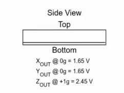 Si tenemos el lado superior del acelerómetro, estos son los valores que podemos esperar obtener de ADC de Arduino.