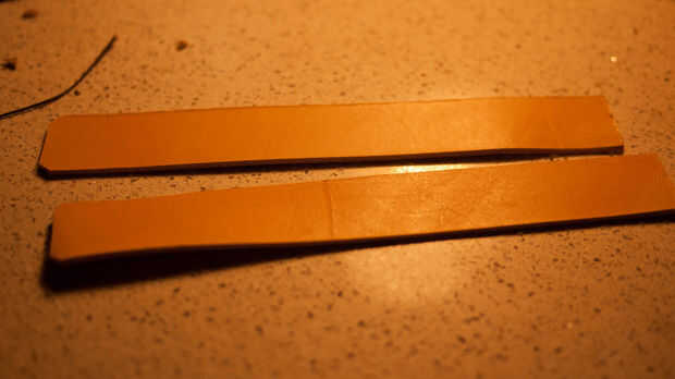Midió la apertura de la hebilla y cortar dos pequeñas cintas más tiempo del necesario y utiliza un agujero de sacador para convertir a éstos en un cinturón. Conformar y biselar los bordes y luego perforar los agujeros - hice un montón de agujeros para que caben un montón de diferentes formas y tamaños. Yo Cruz había cosida estos cinturones en.
