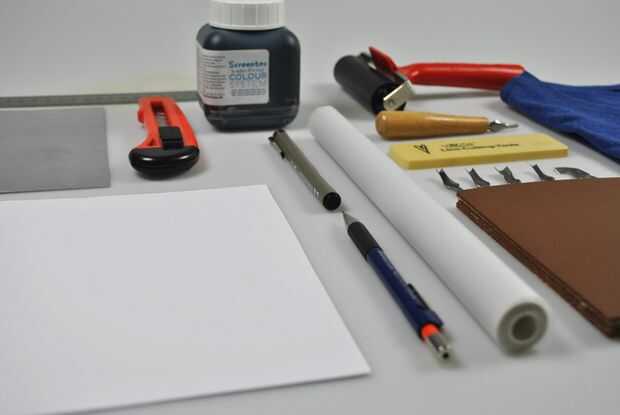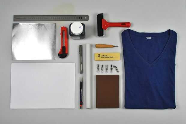 Usted necesitará las siguientes herramientas y materiales para crear tu propia camiseta con un linograbado grabado: