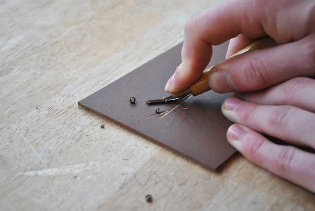 Ahora usted puede comenzar a crear el dibujo. Las partes que corte no retiene la tinta y aparecen en blanco en tu camisa. Ser muy paciente al cortar, para no hacer errores. Asegúrese de que no cortarse con las cuchillas. Las herramientas de corte pueden deslizar fácilmente.