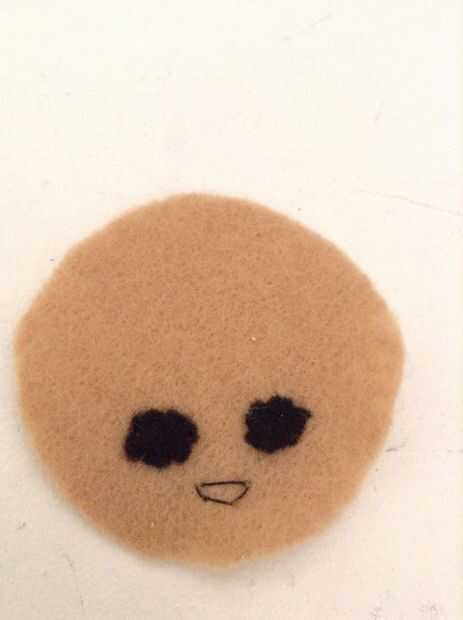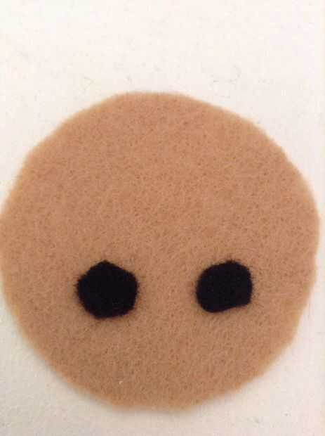 a continuación cose en la cara. Empezar por los 2 puntos negros en con una fieltro puntada de costura. Ahora coser la boca.